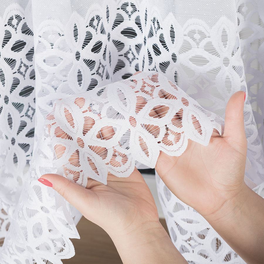 - Wzór: Delikatna firana z delikatnym ornamentowym wzorem