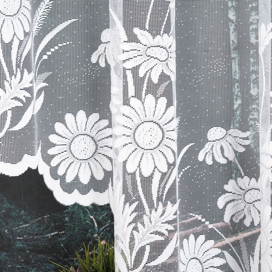 - Wzór: Delikatna firana z kwiatowym wzorem na dole