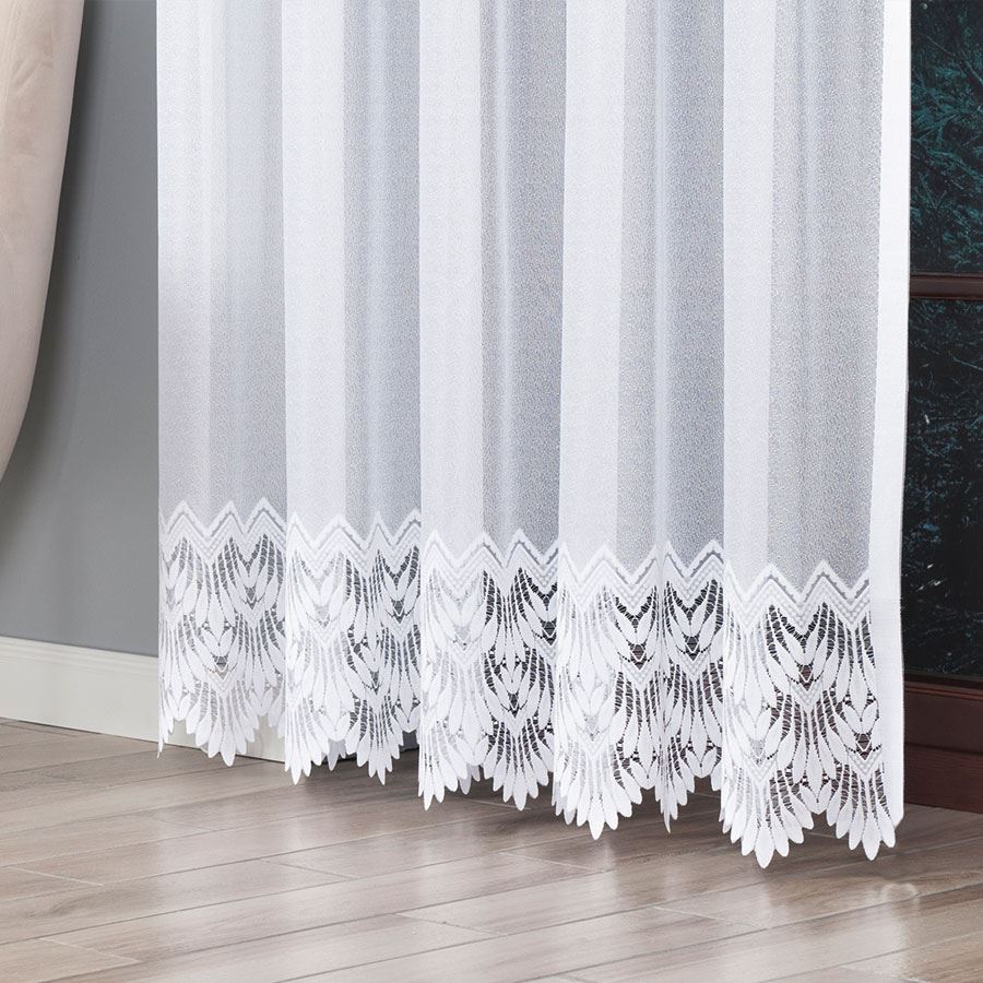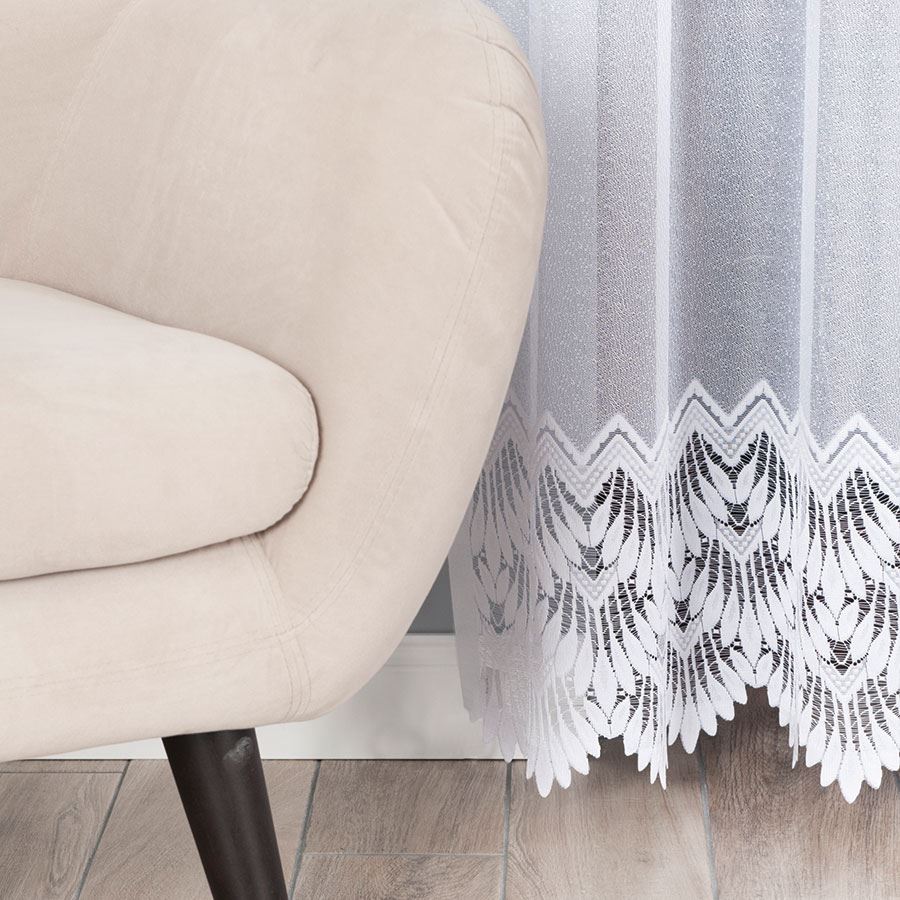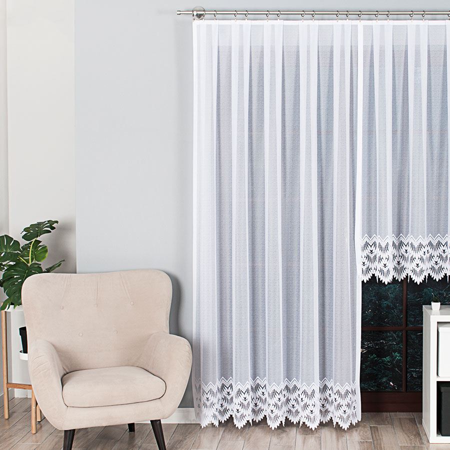 - Wzór: Delikatna firana z delikatnym ażurowym wzorem