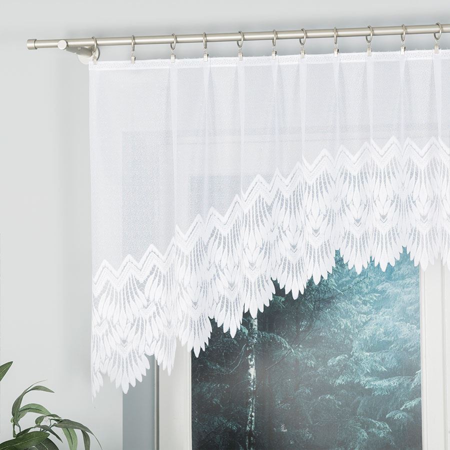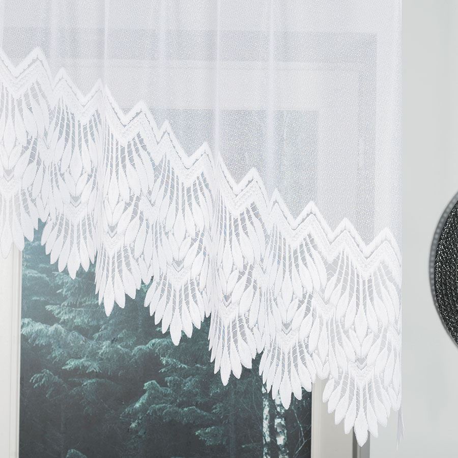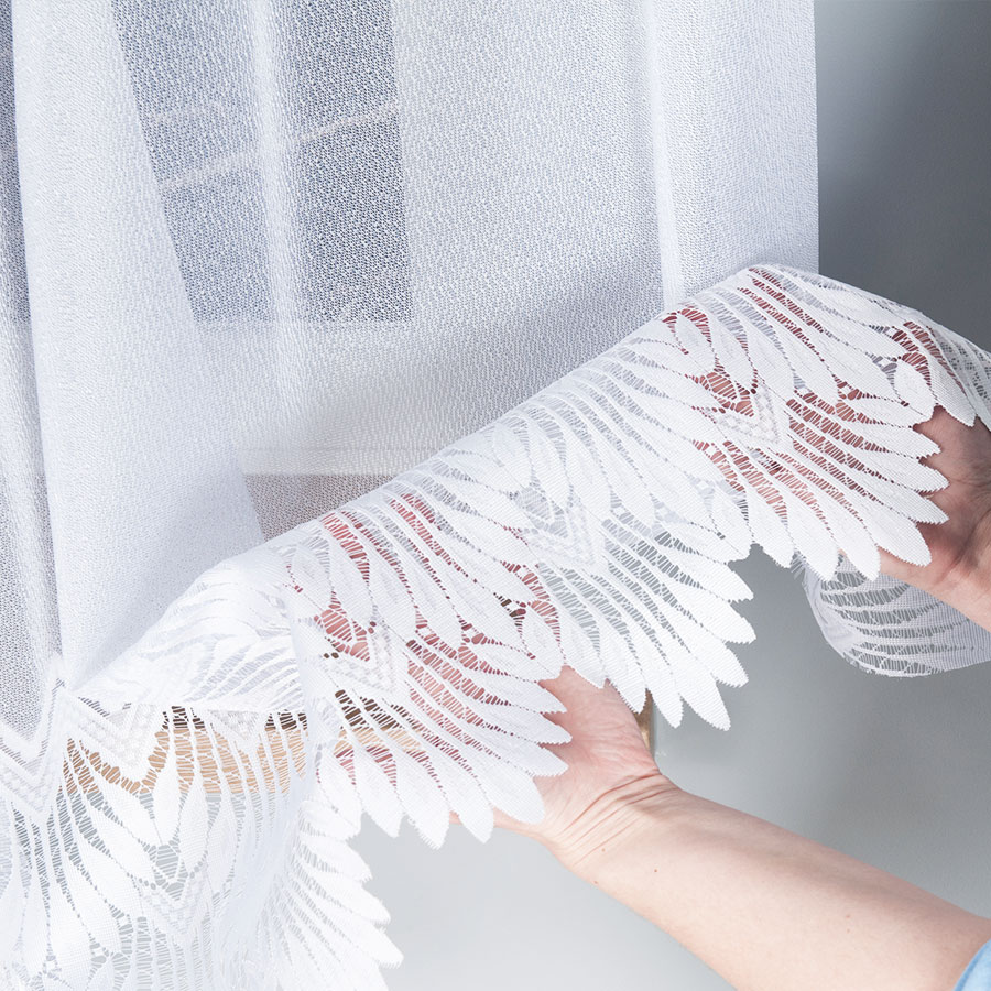 - Wzór: Delikatna firana z delikatnym ażurowym wzorem