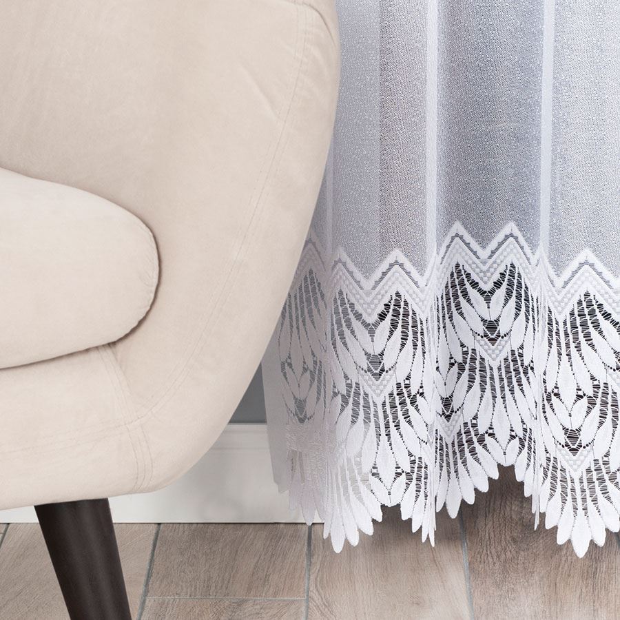 - Wzór: Delikatna firana z delikatnym ażurowym wzorem