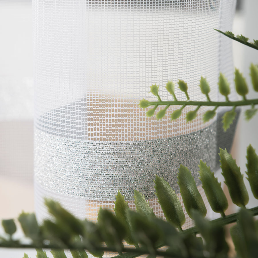 Firanka żakardowa HALINA o wymiarach 300 x 250 cm to elegancka gotowa dekoracja okienna, która łączy klasyczny styl z nowoczesnym akcentem. Biały kolor przełamany srebrnym lurexem nadaje tkaninie subtelny połysk, dzięki czemu firana pięknie odbija światło i rozświetla wnętrze.