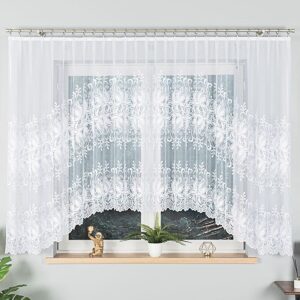 Joanna firanka żakardowa w białym kolorze, zdobiona finezyjnym wzorem z kwiatów i zawijasów. Dekoracyjny dół w formie łuku dodaje lekkości i uroku. Transparentna tkanina delikatnie przepuszcza światło, tworząc przytulną atmosferę. Taśma marszcząca ułatwia zawieszenie i estetyczne ułożenie. Wykonana z wysokiej jakości żakardu co więcej cechuje się subtelnym blaskiem i trwałością.