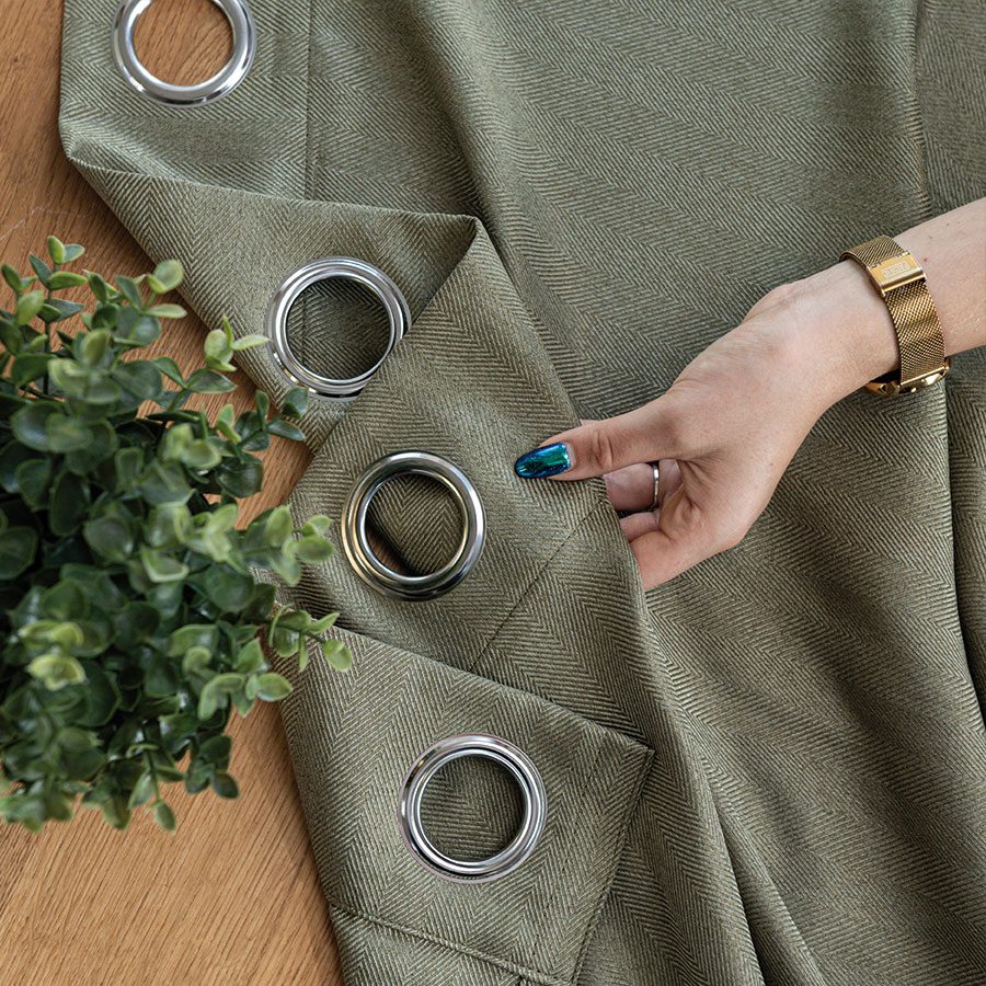 Wykonana z wysokiej jakości tkaniny o wyczuwalnej fakturze, Jodełka doskonale wpisuje się w trendy wnętrzarskie od nowoczesnych, przez minimalistyczne, po klasyczne i retro. Stonowana paleta kolorów współgra z różnorodnymi aranżacjami, tworząc przytulne, ale uporządkowane tło. Zasłona wyposażona jest w praktyczne przelotki, które umożliwiają szybkie i proste zawieszenie.