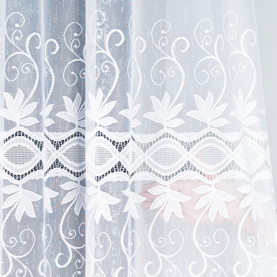 Firanka Jowita to stylowa propozycja dla osób, które cenią sobie subtelność i lekkość w aranżacji okien. Jej klasyczna biel w połączeniu z eleganckim, pasowym wzorem tworzy harmonijną całość, która dodaje wnętrzu naturalnego uroku. Co więcej, dzięki delikatnej, przepuszczającej światło strukturze, firanka rozjaśnia przestrzeń, jednocześnie nadając jej przytulny charakter.