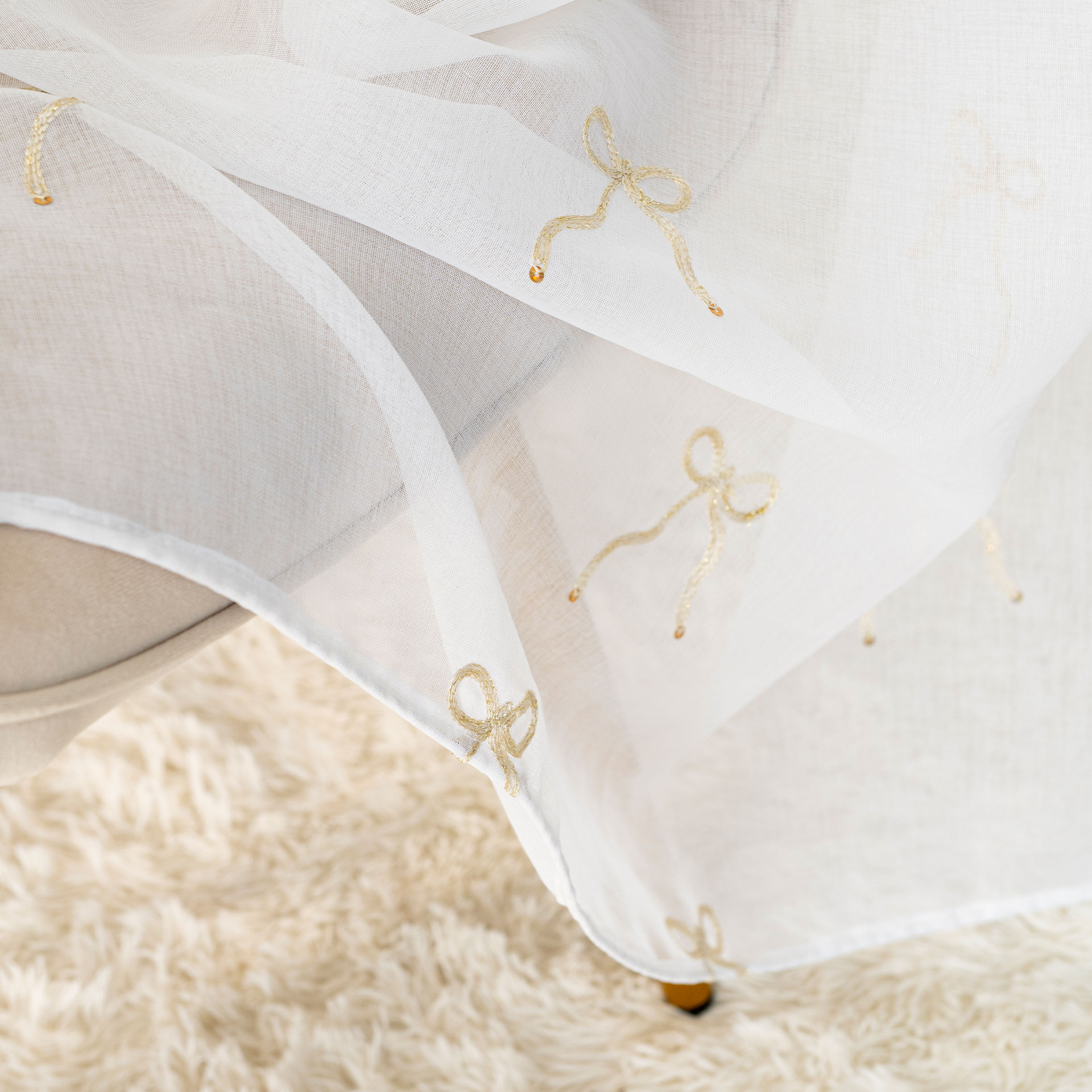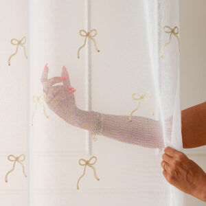 Firanka Kokardka to subtelna i niezwykle elegancka dekoracja okienna, wykonana z lekkiej, półprzezroczystej tkaniny w odcieniu bieli. Jej największym atutem są delikatnie błyszczące aplikacje w formie drobnych kokardek rozmieszczonych równomiernie na całej powierzchni. Haftowane ozdoby dodają firanie wdzięku i dziewczęcej lekkości, jednocześnie zachowując gustowny, klasyczny charakter.