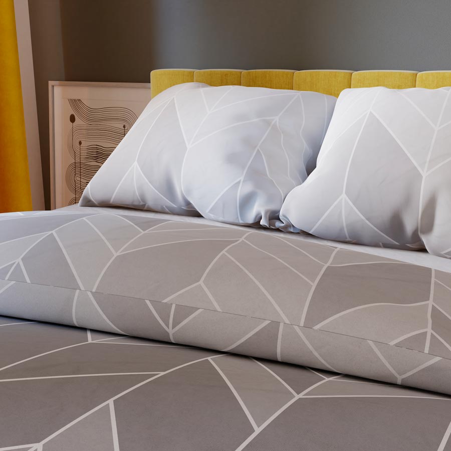 Pościel NITTA to esencja prostoty i współczesnego stylu. Wykonana z wysokogatunkowej satyny bawełnianej (100% bawełna), zapewnia miękkość, trwałość i komfort na najwyższym poziomie. Stonowana szarość w połączeniu z geometrycznym wzorem w formie liści nadaje sypialni nowoczesny, ale przytulny charakter.