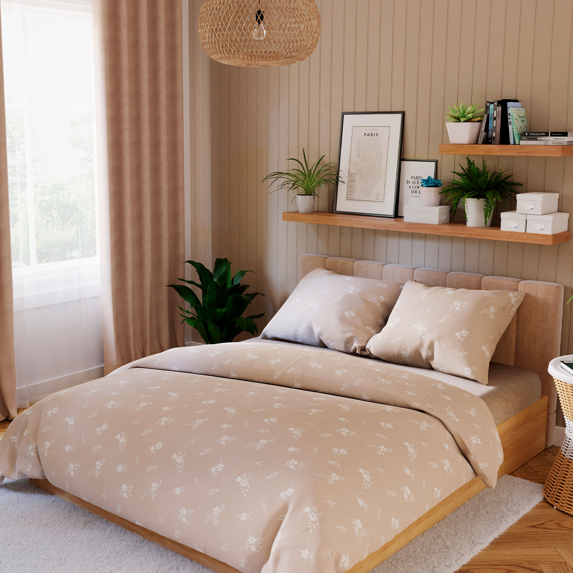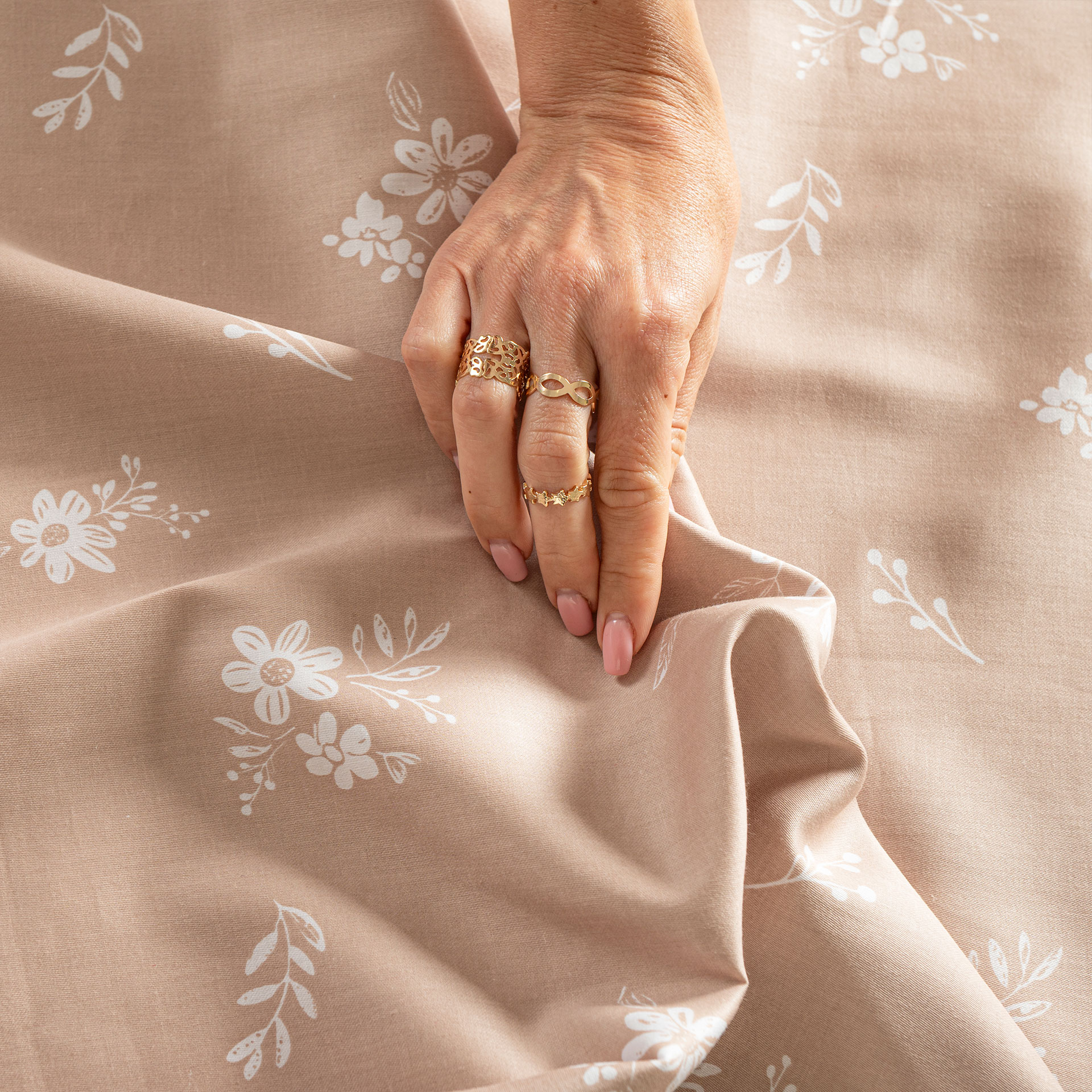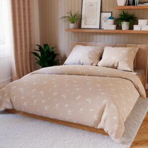 Pościel VELORA to kwintesencja subtelności i przytulnego designu. Jej delikatny beżowy odcień harmonijnie łączy się z drobnym, białym wzorem kwiatowym, tworząc efekt lekkości, a także naturalnej elegancji. VELORA wprowadza do sypialni ciepło i spokój, idealnie komponując się z wnętrzami urządzonymi w stylu skandynawskim, boho czy klasycznym.