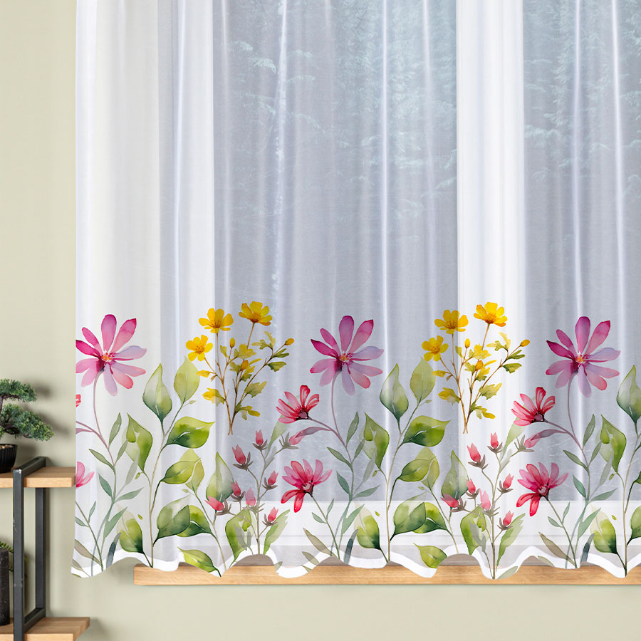 KWIATOWA ŁĄKA Firanka żakardowa gotowa na prosto, szerokość 300 x wysokość 170cm