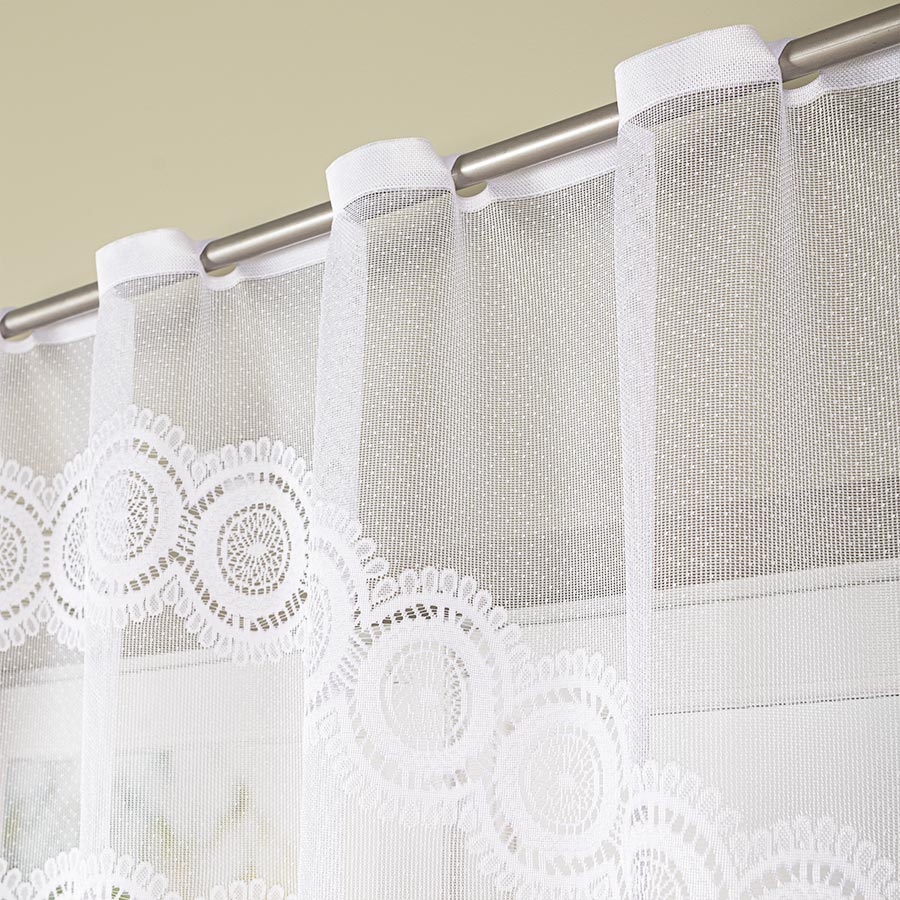 - Wzór: Delikatna firana z eleganckim kolistym wzorem.