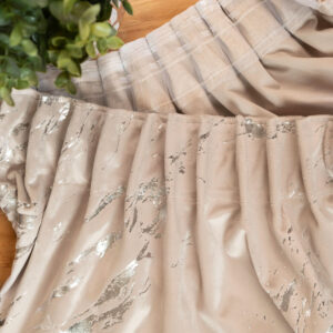 Srebrny nadruk- wzór marmuru to prawdziwa ozdoba, która odbija światło, tworząc efektowną grę cieni i blasku w Twoim wnętrzu ponadto wzór marmurowy dodaje zasłonie szlachetności, jednocześnie nadając jej nowoczesny i elegancki charakter. Zastosowanie taśmy zapewnia łatwość w zawieszeniu, ponadto podkreśla prostotę i nowoczesność produktu.