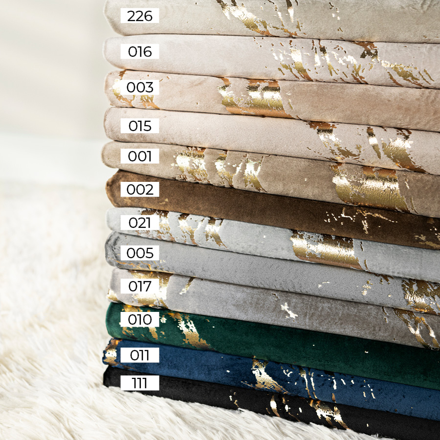 • Materiał: Velvet z marmurowym złotym nadrukiem