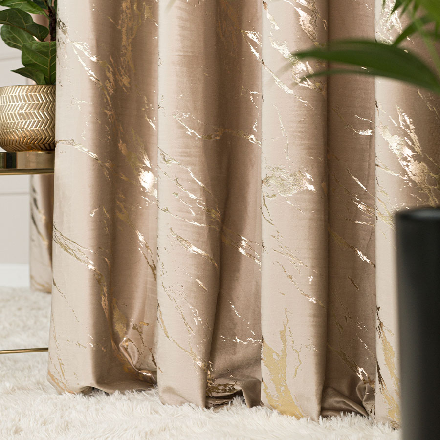 Złoty nadruk- wzór marmuru to prawdziwa ozdoba, która odbija światło, tworząc efektowną grę cieni i blasku w Twoim wnętrzu ponadto wzór marmurowy dodaje zasłonie szlachetności, jednocześnie nadając jej nowoczesny i elegancki charakter. Zastosowanie taśmy zapewnia łatwość w zawieszeniu, ponadto podkreśla prostotę i nowoczesność produktu.
