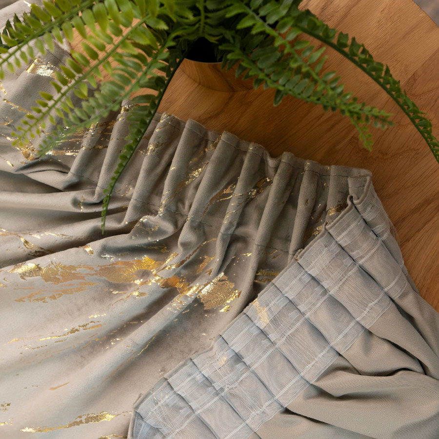 Złoty nadruk- wzór marmuru to prawdziwa ozdoba, która odbija światło, tworząc efektowną grę cieni i blasku w Twoim wnętrzu ponadto wzór marmurowy dodaje zasłonie szlachetności, jednocześnie nadając jej nowoczesny i elegancki charakter. Zastosowanie taśmy zapewnia łatwość w zawieszeniu, ponadto podkreśla prostotę i nowoczesność produktu.