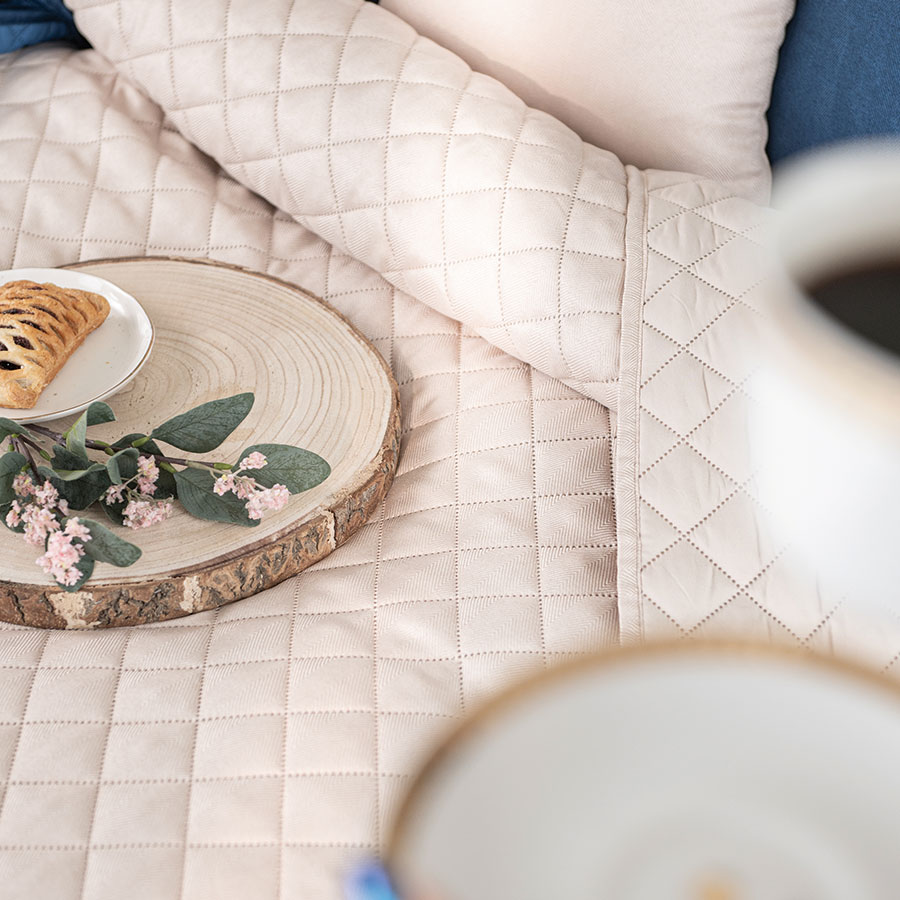 Dodaj nowoczesny akcent do swojej sypialni dzięki narzucie JODEŁKA w eleganckim, jasno beżowym kolorze. To praktyczne rozwiązanie, które odświeża wnętrze i wprowadza do niego porządek oraz stylową prostotę.