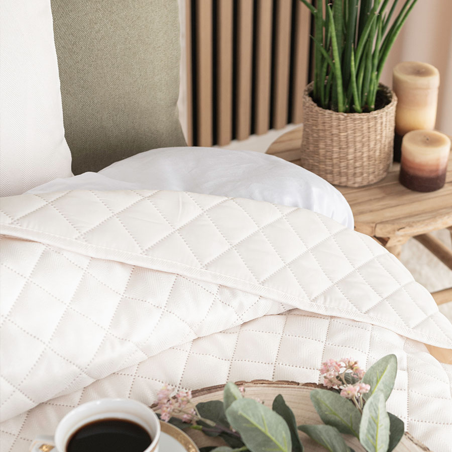 Dodaj nowoczesny akcent do swojej sypialni dzięki narzucie JODEŁKA w eleganckim, kremowym kolorze. To praktyczne rozwiązanie, które odświeża wnętrze i wprowadza do niego porządek oraz stylową prostotę.