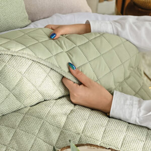 Wprowadź do swojej sypialni elegancję i ciepło dzięki narzucie MOLLY w subtelnym odcieniu szałwiowym. To idealny dodatek, który łączy estetykę z funkcjonalnością, nadając wnętrzu przytulny i harmonijny charakter.