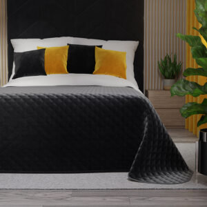 Narzuta VELVI w czarnym odcieniu to połączenie nowoczesnej elegancji i codziennej wygody. Jej miękka, pikowana tkanina ozdobiona geometrycznym wzorem nie tylko przyciąga wzrok, ale też wprowadza do wnętrza wyrafinowaną prostotę. Doskonale sprawdzi się jako dekoracyjny element łóżka, jednocześnie chroniąc pościel i podkreślając estetykę sypialni. To idealny wybór dla tych, którzy cenią styl, porządek i funkcjonalność w jednym.
