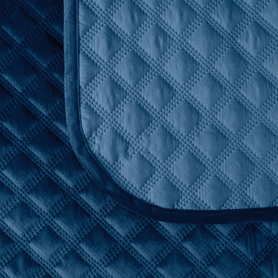 Narzuta VELVI w granatowym odcieniu to połączenie nowoczesnej elegancji i codziennej wygody. Jej miękka, pikowana tkanina ozdobiona geometrycznym wzorem nie tylko przyciąga wzrok, ale też wprowadza do wnętrza wyrafinowaną prostotę. Doskonale sprawdzi się jako dekoracyjny element łóżka, jednocześnie chroniąc pościel i podkreślając estetykę sypialni. To idealny wybór dla tych, którzy cenią styl, porządek i funkcjonalność w jednym.
