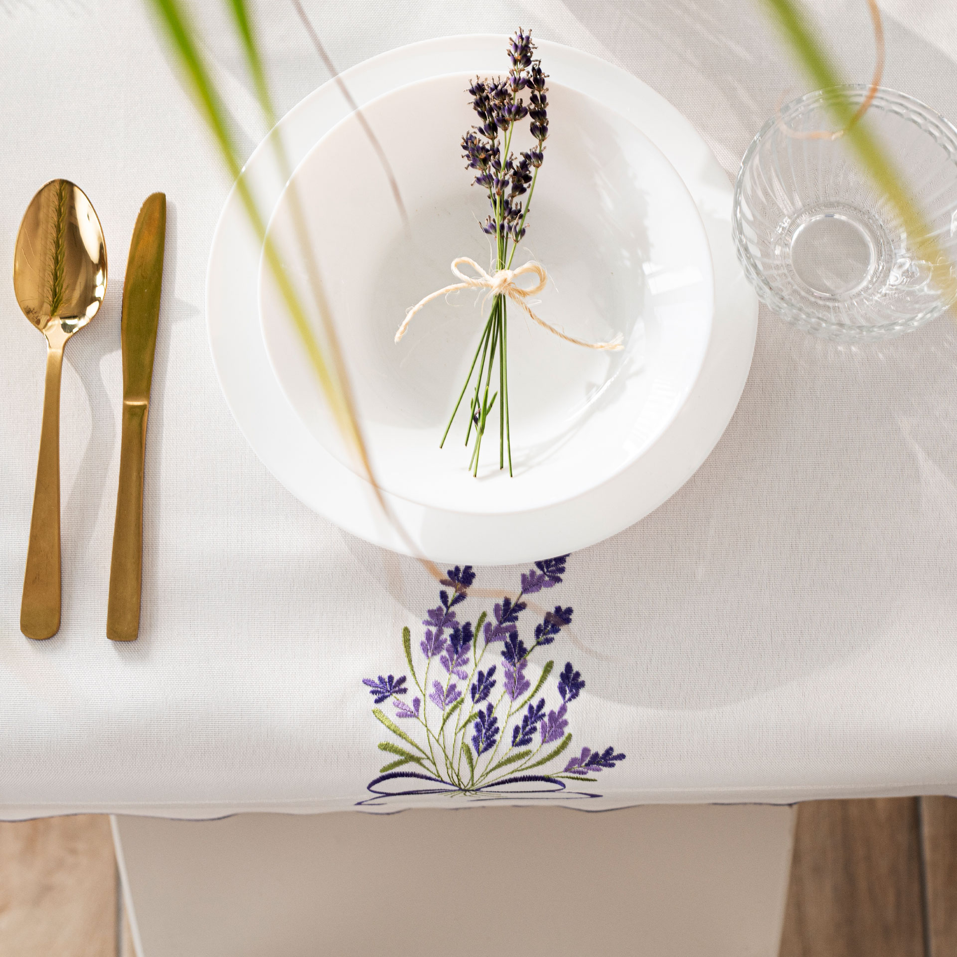 Obrus LAWENDOWA POLANA z haftem 140×180 cm – styl i praktyczność na Twoim stole