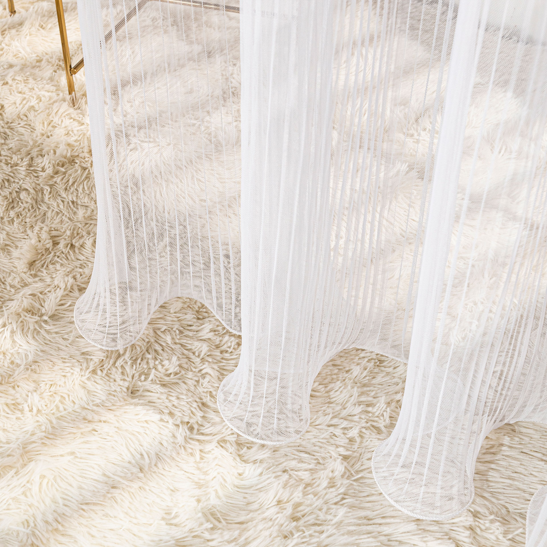 - Uniwersalny styl – klasyczny biały kolor i gładka struktura tkaniny sprawiają, że firana pasuje do każdego wnętrza, niezależnie od stylu.