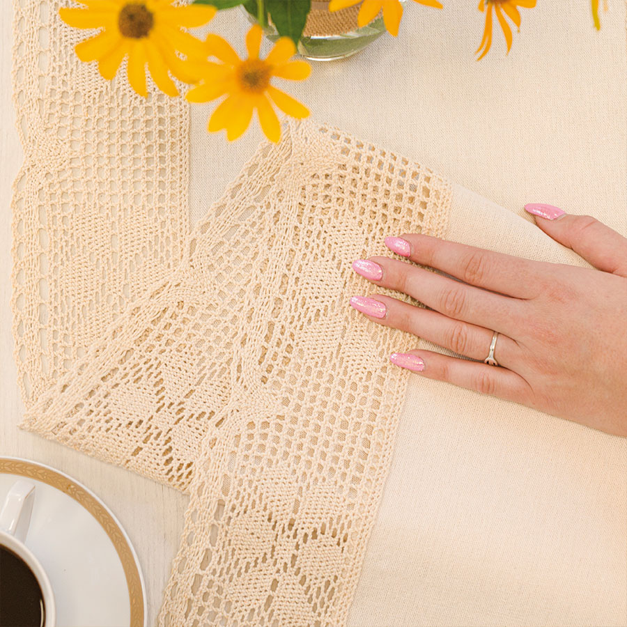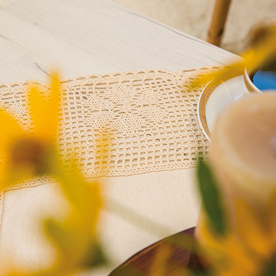 • Łatwość dopasowania: Obrus można łączyć z kolorowymi bieżnikami i szalami, tworząc własne kompozycje dekoracyjne.