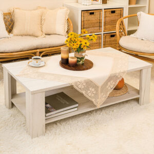 Serweta RACHELA to esencja elegancji i ponadczasowego stylu. Wykonany z wysokiej jakości białej tkaniny, ozdobiony misterną ażurową koronką w kwiatowy wzór, doskonale komponuje się zarówno z klasycznymi, jak i rustykalnymi aranżacjami wnętrz. Subtelny ażur nadaje mu lekkości i romantycznego uroku, tworząc ciepłą, domową atmosferę.