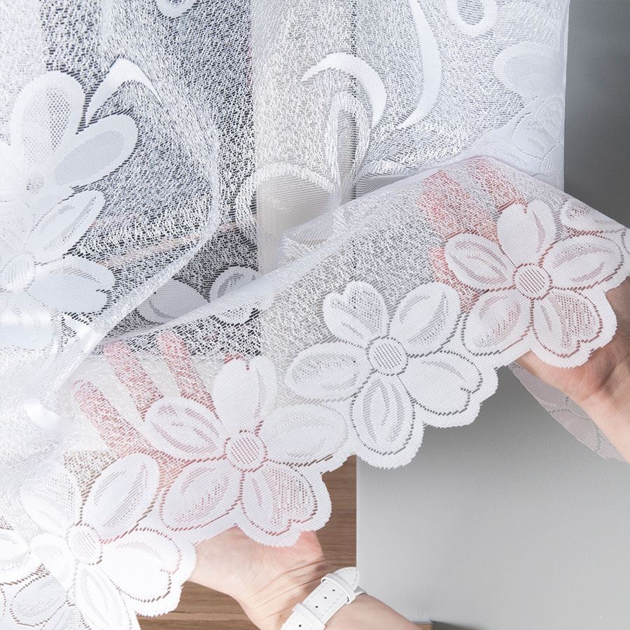 - Wzór: Delikatna firana z kwiatowym wzorem.
