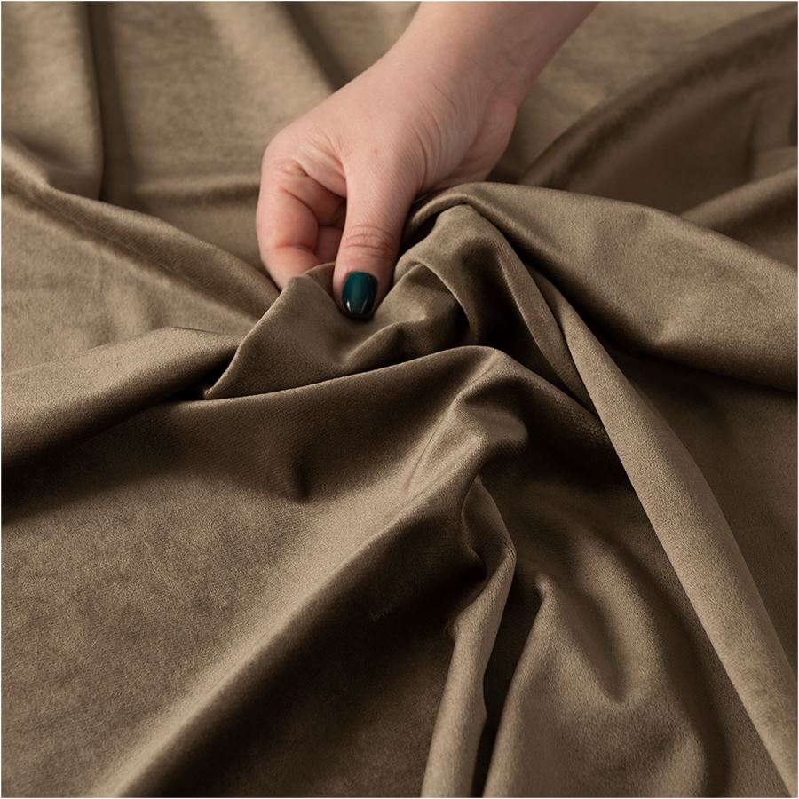 Zasłona VELVI została uszyta z mięsistego, welurowego materiału o aksamitnej strukturze, który jak widać zachwyca swoim głębokim kolorem i subtelnym połyskiem, przez co tkanina jest niezwykle przyjemna w dotyku i tworzy we wnętrzu wrażenie ciepła oraz elegancji. Poza tym doskonale prezentuje się zarówno w sypialni, jak i salonie, wprowadzając atmosferę spokoju i klasy.